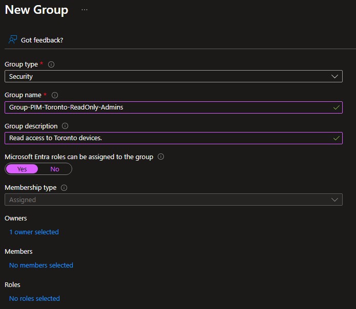 3. Create and Configure the PIM-Enabled Groups: Set up role-assignable groups to manage “Just-in-Time” access for the teams.