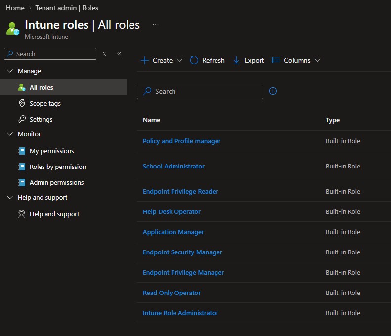 Be aware that there are both Entra Roles and Intune Roles. Intune Administrator is an Entra Role. In this post we are going to explore setting up Intune Roles.