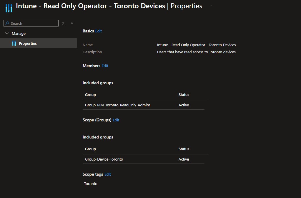 Let’s say we have different IT teams in different cities that are responsible for supporting devices in their respective offices. Let’s say a “Toronto” office and a “Winnipeg” office. We want these teams to have the access they need, while practicing least-privilege.