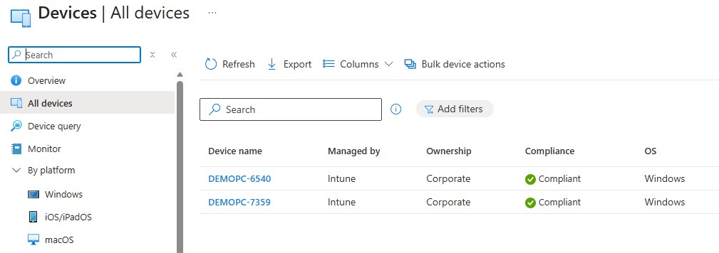 5. Test the Workflow: Verify that the technicians are unable to see any devices in the Intune portal until after elevating their permissions with PIM. After elevating with PIM, test that they can perform actions based on their roles.